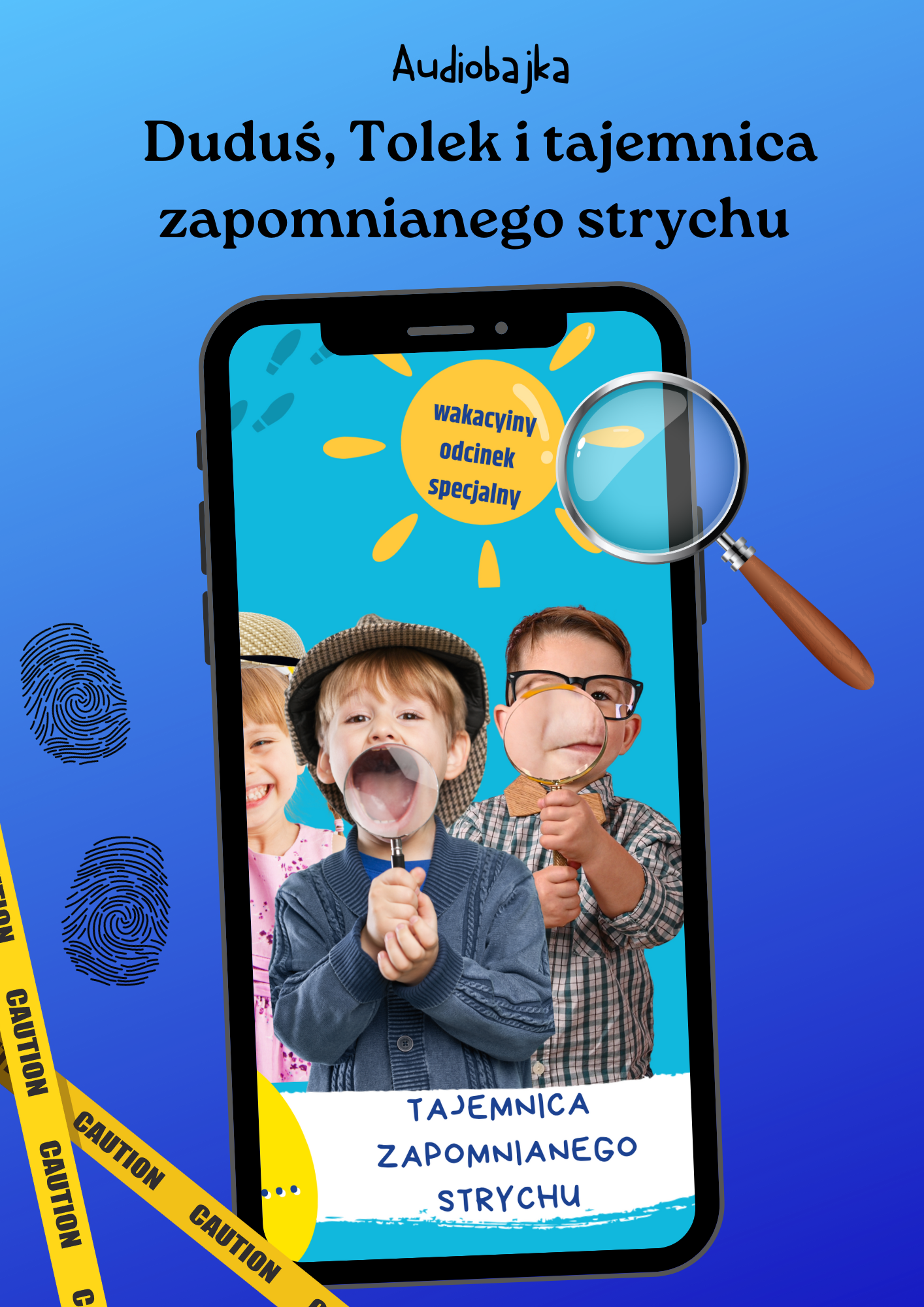 Duduś i Tolek wyjeżdżają z rodzicami na wakacje nad morze. Pewnego poranka, Dudusia wybudza ze snu… dziwne skrzypnięcie drzwi, które nie pochodzi z pokoju żadnego z domowników! Skąd się wzięło? Skąd dochodzą te dziwne odgłosy, których jest coraz więcej? Kolejna zagadka do rozwiązania staje na drodze dwóch pięcioletnich detektywów. To będzie jednak zupełnie inna sprawa do rozwiązania! Będzie wymagała niezłego główkowania, a nawet poszukiwania starej mapy zapomnianego strychu, na ktorym… no właśnie, co tam się wydarzy?Dwaj detektywi nie będą jednak sami! Niespodziewanie podczas rozwiązywania sprawy spotkają… Lucynę, która dołączy do ich Agencji Detektywistycznej i razem stawią czoła niezwykle tajemniczej sprawie starego, zapomnianego strychu.